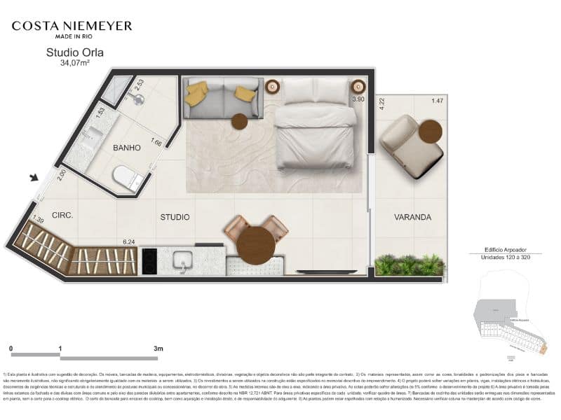 - Diferencial: Oferecem o maior conforto espacial do empreendimento, unindo a praticidade do studio com o luxo de uma área externa privativa.