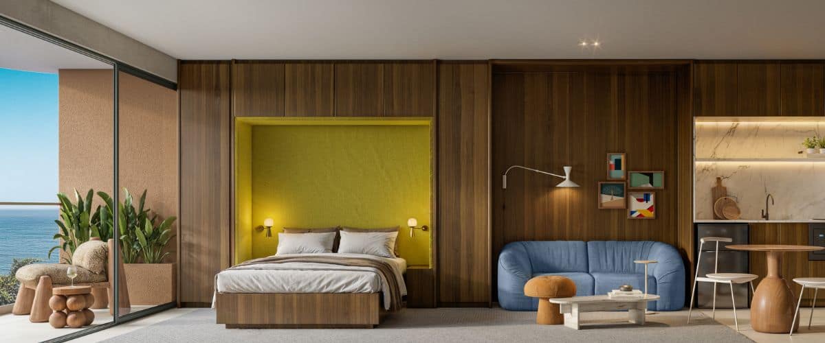 - Características: São as unidades padrão, projetadas com foco em funcionalidade e design. Possuem varandas com guarda-corpo autoportante (vidro sem interrupção visual) para maximizar a entrada de luz e a conexão com o mar.